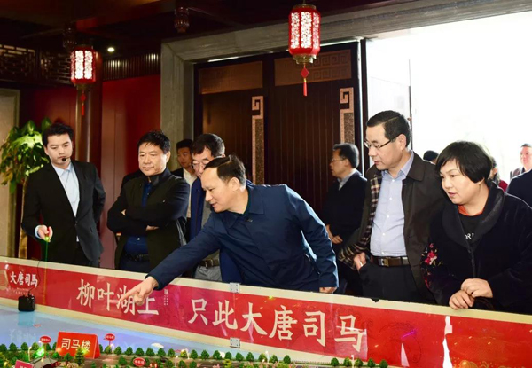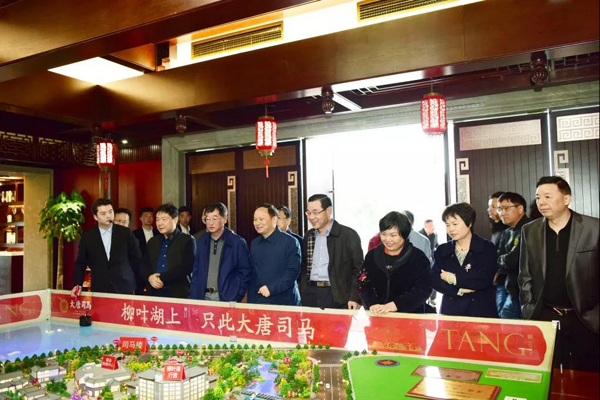 4月10日,常德市政協主席李愛國、常德市人大常委會副主任戴君耀、政協副主席傅紹平、常德市政府副市長涂碧波、常德市文化旅游廣電體育局局長楊俊、常德市民政局局長龔美愛、柳葉湖旅游度假區管委會主任方志煒等領導視察大唐司馬,天下桃花源集團董事長金義紅陪同視察并匯報項目建設情況。