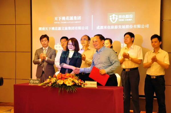 2019年5月27日上午10:00,湖南天下桃花源文旅集團有限公司與成都來也旅游發展股份有限公司戰略合作簽約儀式暨新聞發布會在成都市世外桃源大酒店隆重舉行。
