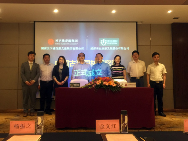 湖南天下桃花源文旅集團有限公司董事長金義紅、湖南天下桃花源文旅集團有限公司副董事長黃立群、湖南天下桃花源文旅集團有限公司旅游顧問唐智勇、湖南天下桃花源文旅集團有限公司企劃部長李曦、成都來也旅游發展股份有限公司創始人楊振之、成都來也旅游發展股份有限公司董事長楊叢源、成都來也旅游發展股份有限公司副總裁唐德軍、寧波來也投資管理有限責任公司總經理陳宇、成都來也旅游發展股份有限公司數字營銷總經理田志奇及相關媒體出席了本次活動,共同見證了這歷史性的一刻。