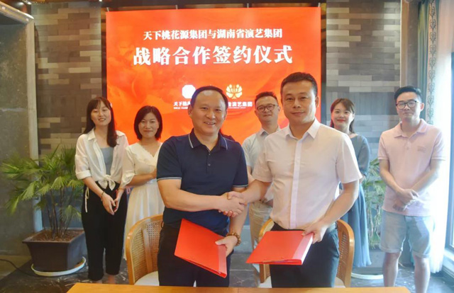 湖南省演藝集團與天下桃花源集團簽約后,將結合各自優勢,在演藝節目開發、演藝場所經營、演藝活動經紀、文化演藝產業衍生品開發、對外演出交流、影視劇投資、舞臺藝術開發等領域進行全方位和深層次合作,形成“演出+旅游”的產業鏈。